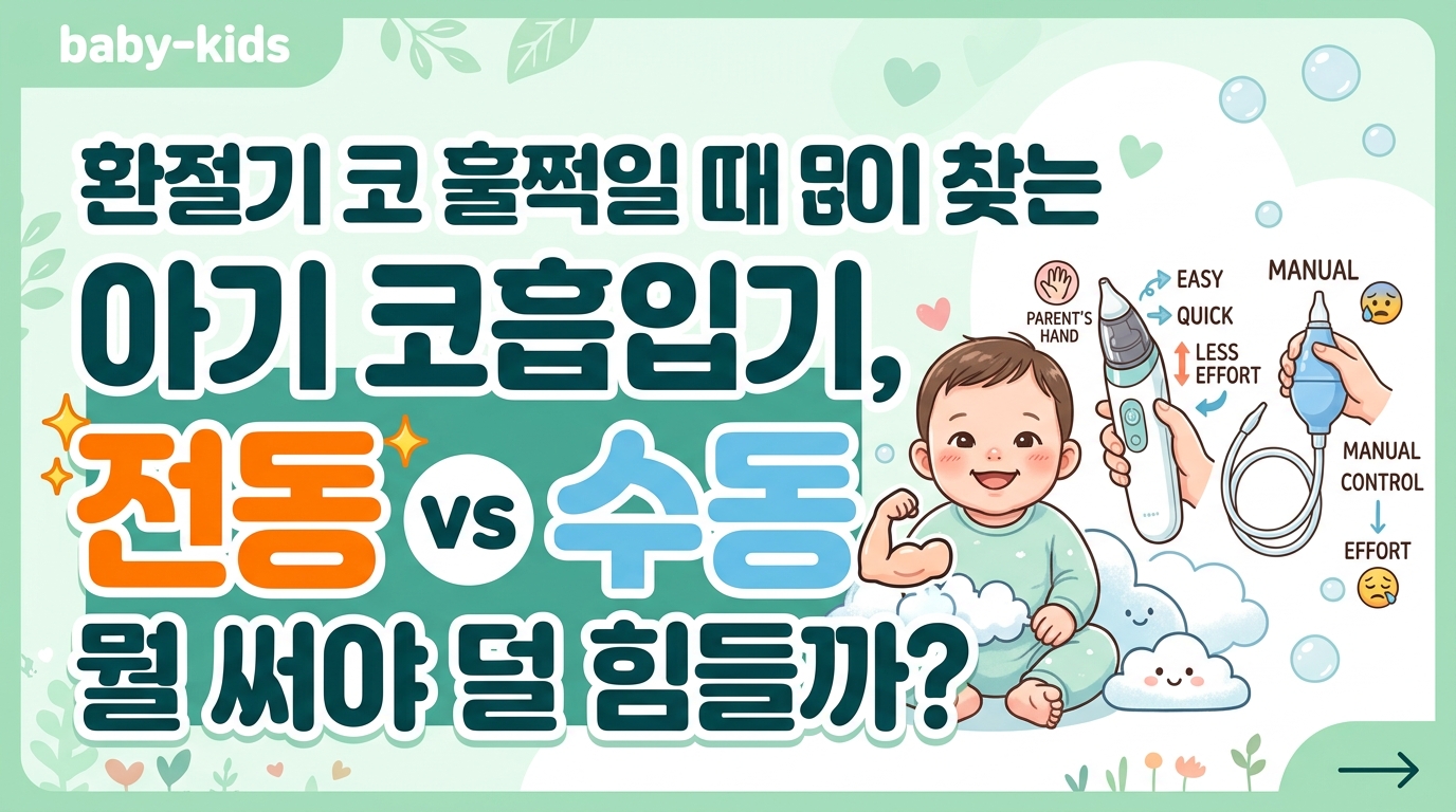 환절기 코 훌쩍일 때 많이 찾는 아기 코흡입기, 전동 vs 수동 뭐가 덜 힘들까?