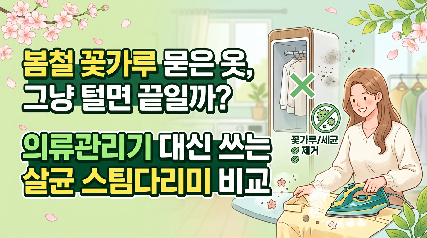 봄철 꽃가루 묻은 옷, 그냥 털면 끝일까? 의류관리기 대신 쓰는 살균 스팀다리미 비교