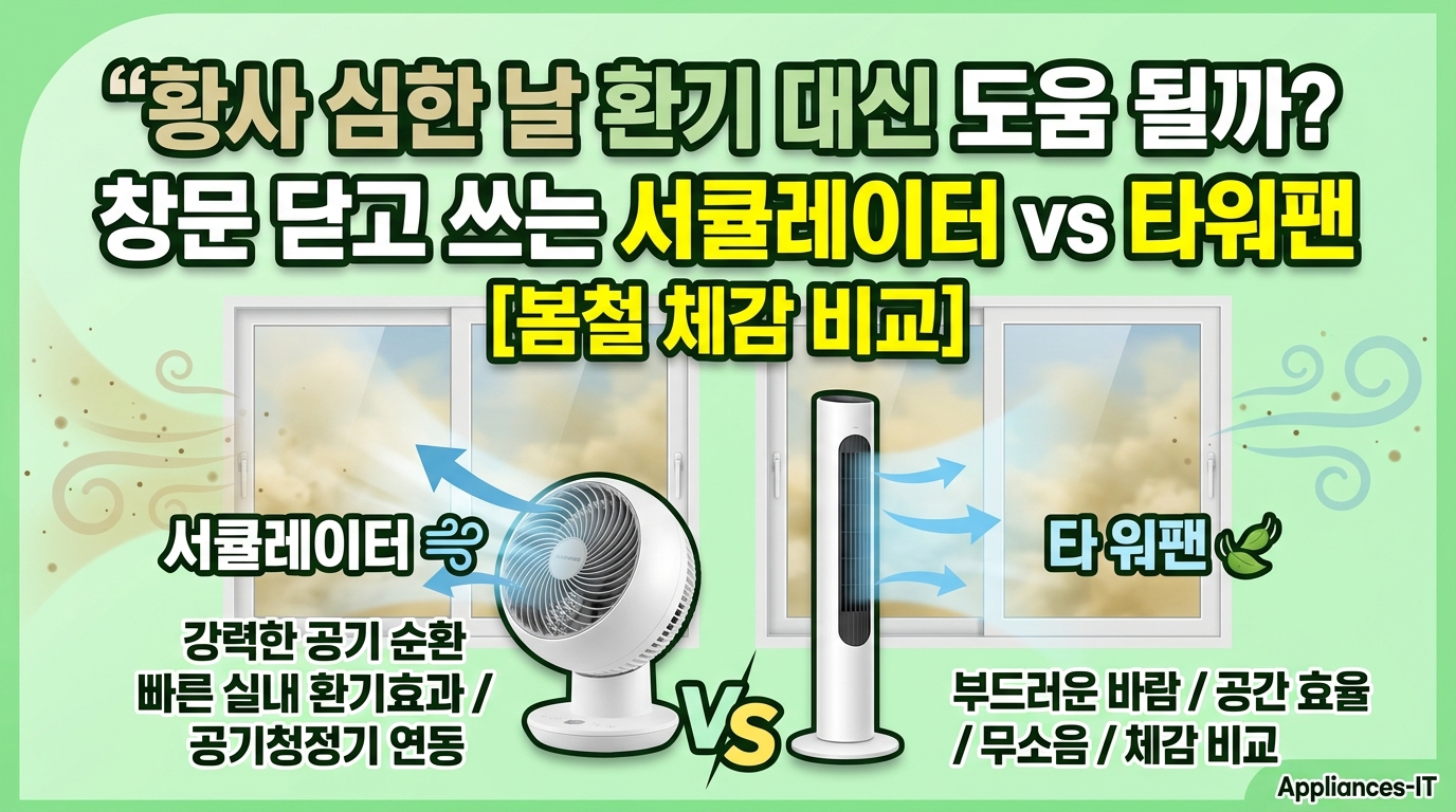 황사 심한 날 환기 대신 도움 될까? 창문 닫고 쓰는 서큘레이터 vs 타워팬 봄철 체감 비교