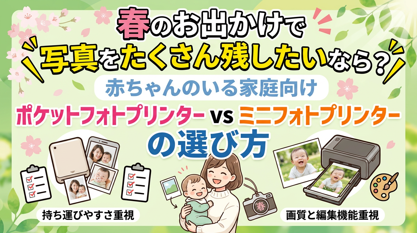 比較しようと思ったきっかけは、春のお出かけシーズンでした。桜、公園、抱っこ紐、寝落ち、急にいい表情。撮りたい瞬間が多すぎる。しかも赤ちゃん時代って、数か月で顔つきまで変わるじゃないですか。あとで印刷しよう、では普通に遅いなと感じました。
